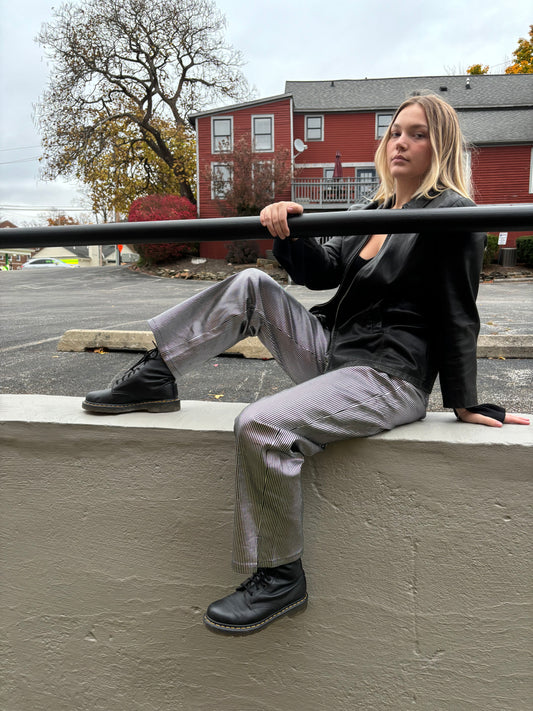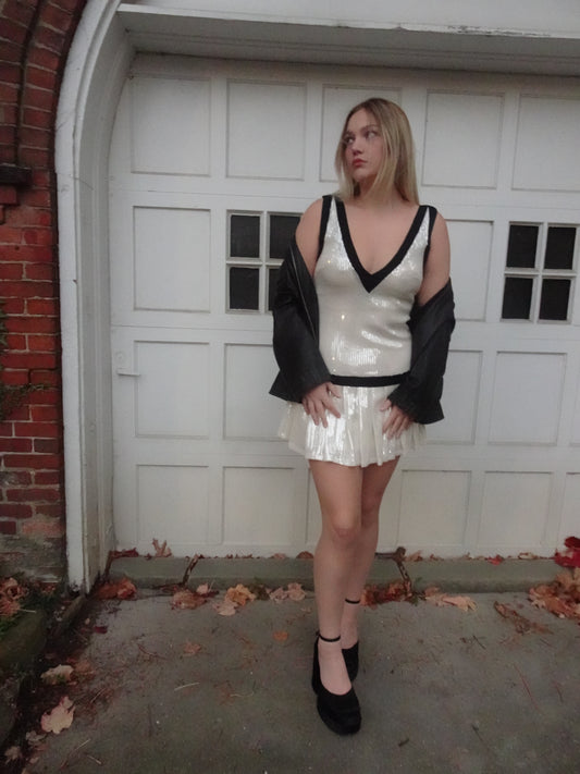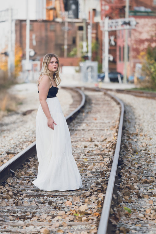 Cyrus Vegan Leather Bra Top Silky White Maxi Dress
